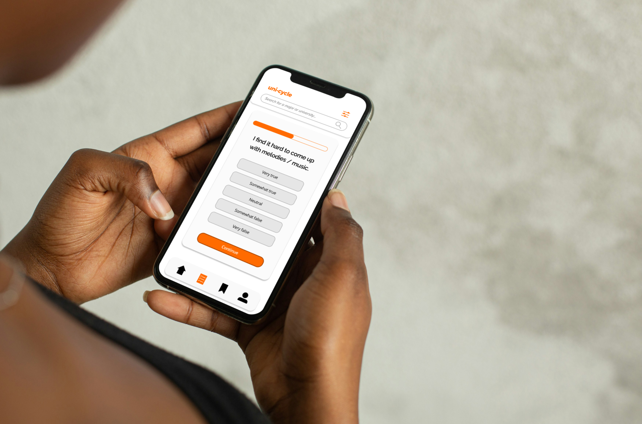 My primary flow follows Ryan, my persona, starting out his college search. He hasn’t quite decided on a major and uses the quiz feature of Uni-Cycle to find out the perfect one for him. He then cycles through different colleges and chooses to apply to NYU.